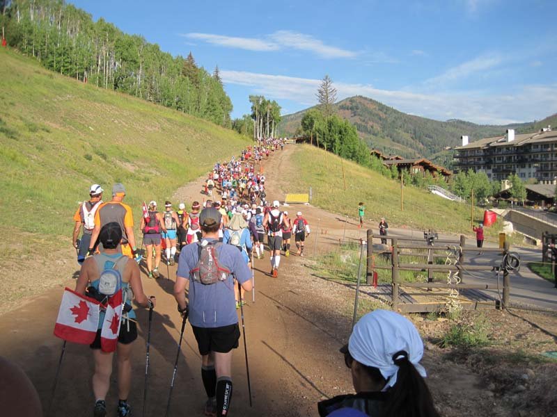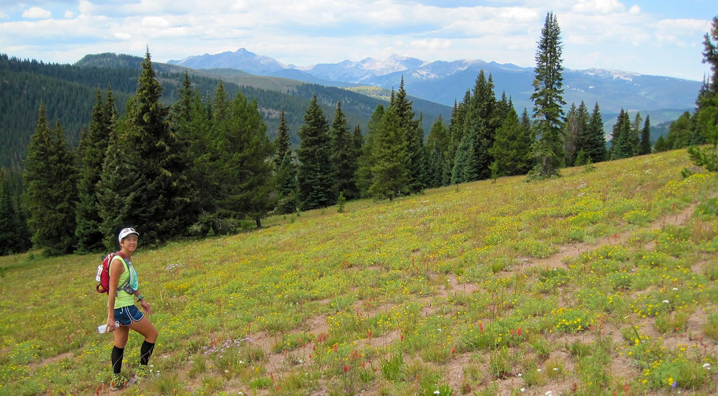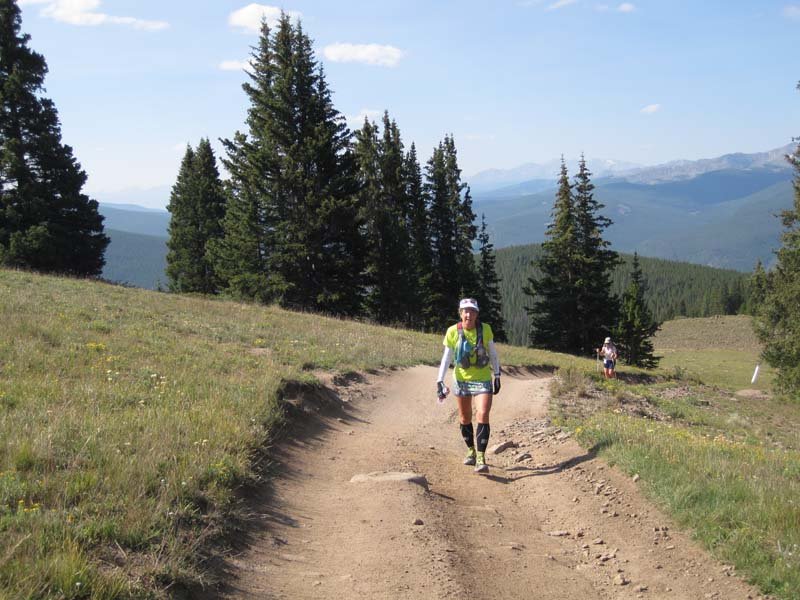 IMG_3941Day 6 – Vail to Beaver Creek: 20.9 miles/4900ft elev. gain. The night before, I sneezed more times than I have in a long time. Was it allergies of some kind? My head and chest felt heavy, though my legs still felt pretty good. By morning, I realized I had a full-blown head cold. Really? A head cold now? I hadn’t had a cold in several years. But I guess that’s what you get when you’re sharing things at camp. It sure doesn’t help when you need every ounce of energy and every breath you can take to run at altitude.