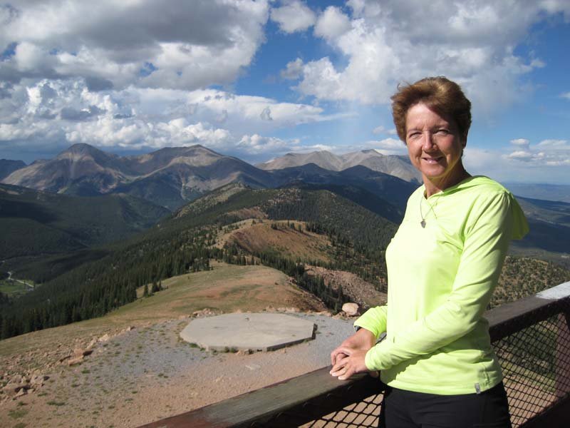 IMG_3854Although this was a shorter stage, I knew it was also a steep one, climbing quickly with crazy grades of 29%. About two miles out of Camp Hale, the road turned up the hill and the climb began. It was innocuous at first, but turned ugly and angry. We were climbing rutted roads that even a jeep wouldn’t want to take. People were using their toes to dig in and make the climb, some slipping and almost losing their balance. “This is nuts!” I kept thinking. But, for the pain, you are rewarded. These were the views you saw in the brochure–the ones you paid the big bucks for. And, you deserved the great views after sacrificing all your energy to get there.