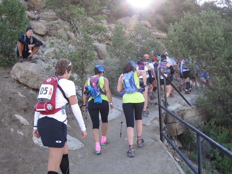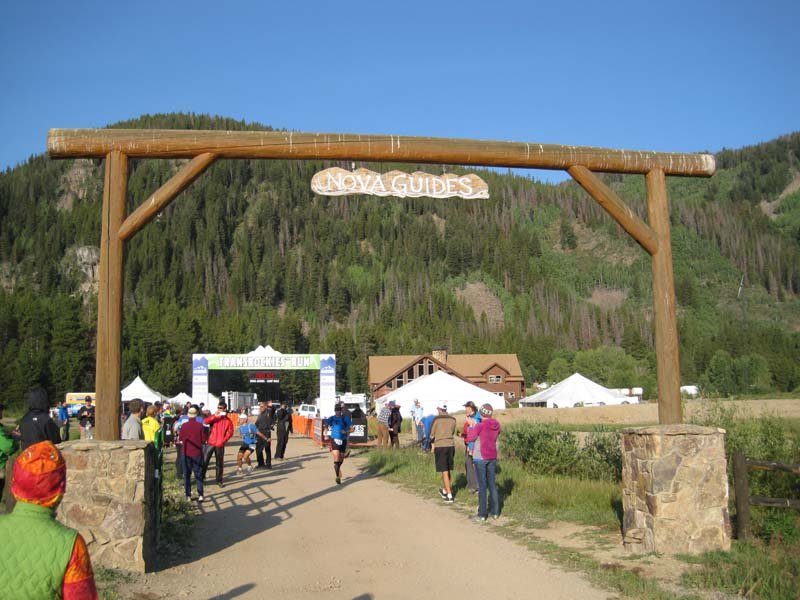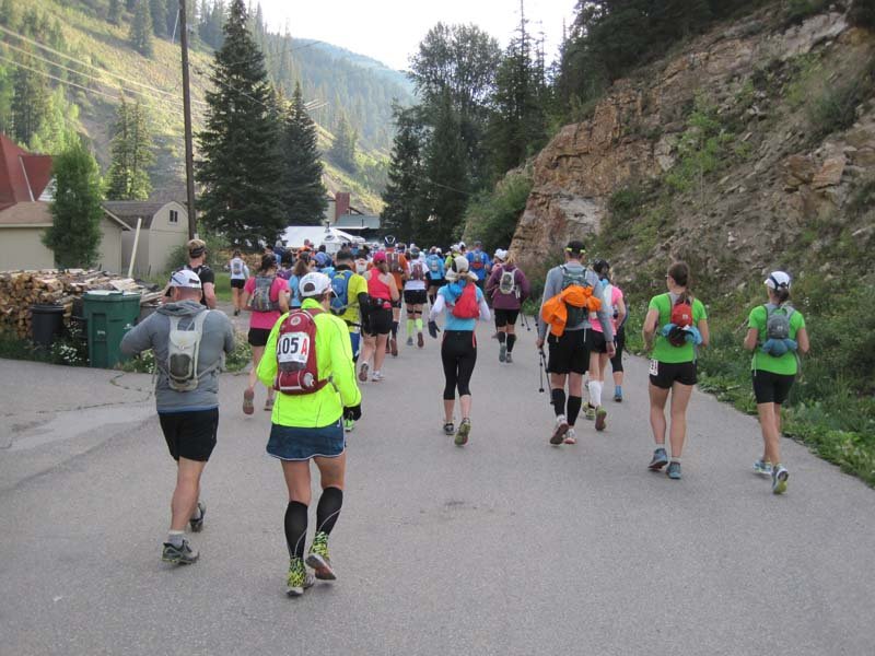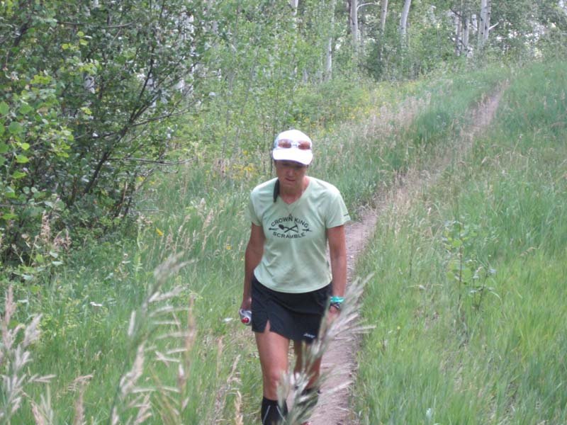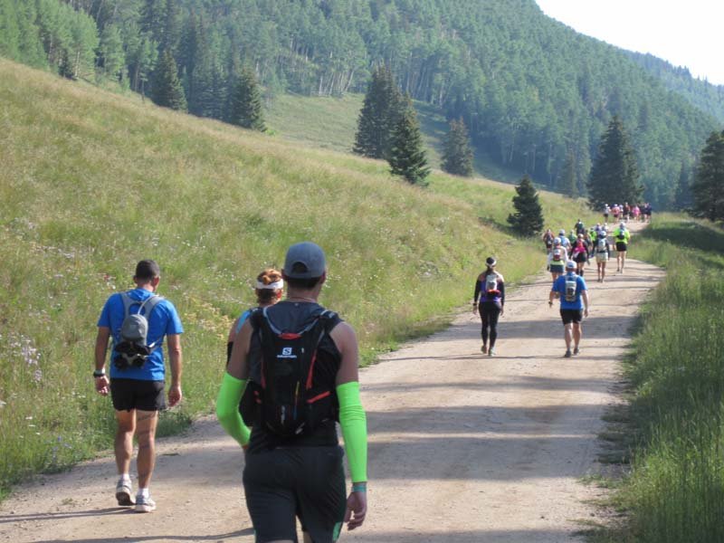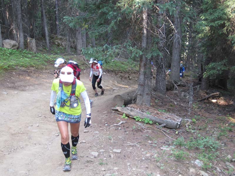IMG_3897Red Cliff is a darling town out in the middle of nowhere. We were bused in and the local sports bar and grill served up coffee and hot chocolate. They even had a fire going outside. It was a beautiful day but I was still nervous. The music they’d played at the start every day, Highway to Hell, started playing and we were off. I was immediately surprised I wasn’t tired at all. I began walking faster and faster, even running some. Having started off nearly dead last, I passed many racers in those first 6 miles. Even Gary wasn’t keeping up and that was a first! I actually had to wait for him at the first aid station and he actually had to hustle in! There’s a rule in this race that you must be within 2 minutes of your partner at each aid station and at the finish. Although you’d assume you’d always be together as partners, you’re not. So, sometimes it can be a challenge.