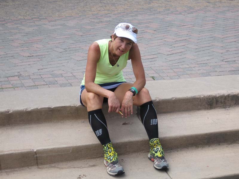 IMG_3933Having lost Gary again, I waited briefly and together, we flew the rest of the way down, running some pretty fast miles. I nearly petered out at the finish but he pulled me through. Working that hard for so many miles with such focus at the end took its toll. For no reason at all, I broke down and cried, The tears just fell and I couldn’t stop them. I suppose it’s a form of stress release–not sure. But I got myself together and felt proud of how we did on the hardest day, so late in the week.