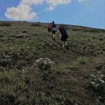 About mile 5, the trail turns up Mt. Delano for the big climb. We caught up with three guys from California. They were quite nice and cheerful and one of them was struggling too. I would go about 20 steps then wait for Kim. The guys were doing the same. About a quarter mile from the top, Kim was ready to call it quits, but I encouraged her to take 10 steps at a time then rest. We finally made it to the top and the views were incredible! Sadly, we just missed the mountain goats that had been there earlier.